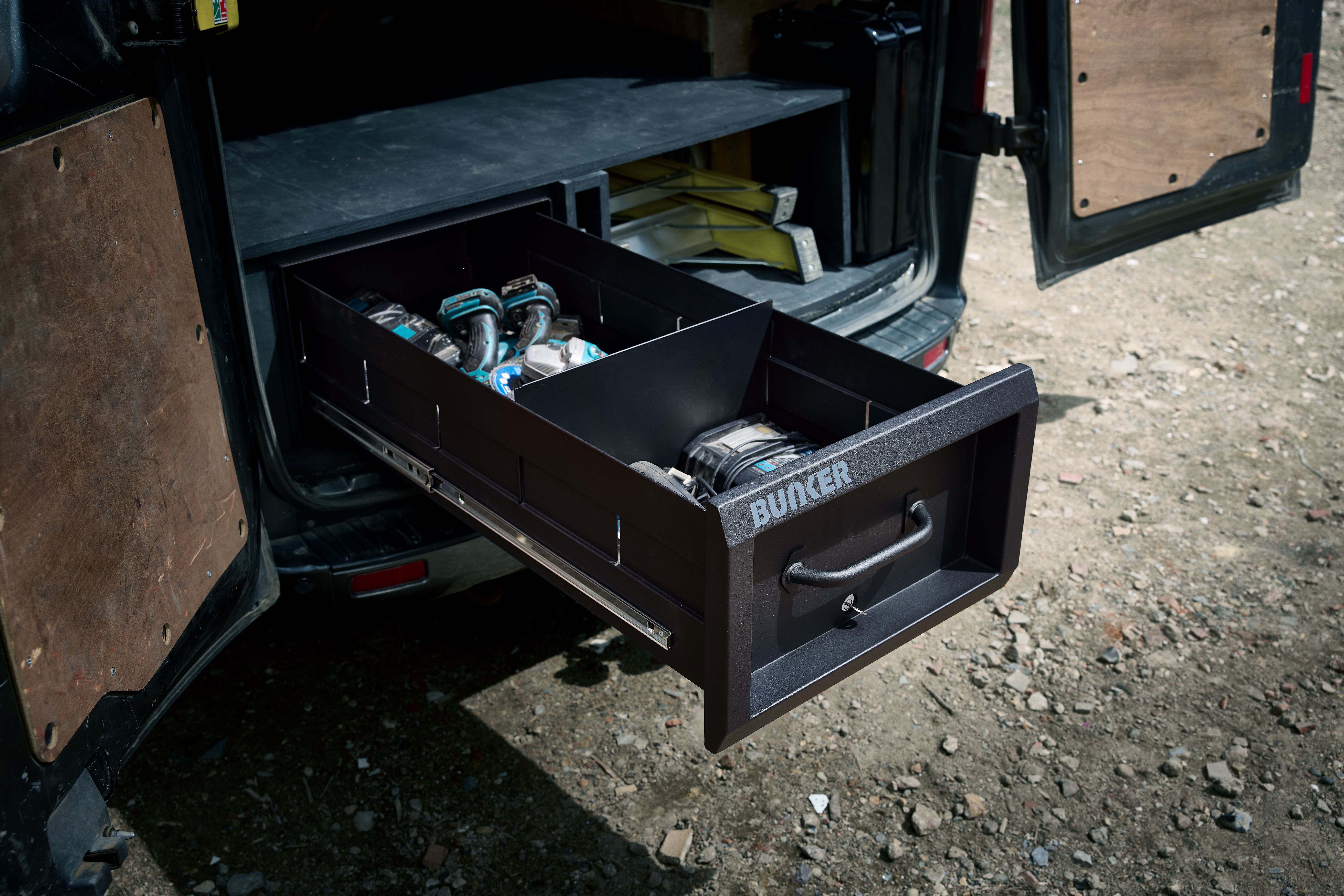 Constructed from heavy-duty steel, this box features a spacious sliding drawer that moves effortlessly on ball bearings. As well as being securely bolted to the vehicle floor, the box has a tough security lock (supplied with two keys) and a discreet built-in holder for an AirTag, allowing you to track your tools in case they go missing. The BUNKER S1 SLIDING BOX has been rigorously tested and certified as Silver by Sold Secure, the UK’s leading authority on security products and Secured by Design, the official police security initiative. It comes with all the necessary fixings for installation in your vehicle.