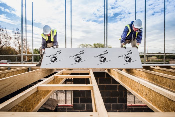 The recyclable, peel-away film on EGGER Peel Clean Xtra helps to prevent moisture ingress and provides an additional moisture barrier upon completion of the floor. Once the film has been removed, it leaves a clean floor ready for handover. When laid using EGGER's recommended fitting method, the boards can be exposed to the elements for up to 60 days during construction.