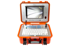 The 3688AT system is a professional long-range pipe inspection solution designed for inspecting pipelines between 4″ and 10″ in diameter. It features a clear 10″ LCD monitor integrated into a multifunctional control station with a single joystick for pan-tilt camera control and a durable keyboard pad for on-screen typing and editing. The system is equipped with a 2″ (60 mm) detachable waterproof colour pan-tilt camera head with built-in LED lighting, enabling comprehensive internal pipe viewing. A durable 9 mm fiberglass push rod cable with an integrated meter counter provides up to 400 ft of inspection reach. The camera includes a built-in 512 Hz sonde transmitter for compatibility with locating equipment. Additional features include dual USB and SD card recording, voice-over recording via an integrated microphone, detachable spring kits for different pipe conditions, interchangeable skids for stable pipe traversal, and a heavy-duty waterproof transport case. The system is powered by a rechargeable 6600 mAh lithium-ion battery providing up to four hours of continuous operation.