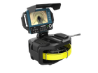 The 5D3 pipe inspection system is designed for inspecting pipelines, drains, and sewers while maintaining a clean and organized work area through its catch-frame reel design. The system features a 7/8″ (23 mm) self-leveling HD waterproof colour camera with integrated high-power LED lighting and a built-in 512 Hz sonde transmitter to support accurate locating. It is equipped with a clear 8″ HD LCD monitor with USB and HDMI ports, supporting video and image recording to USB or SD card, as well as mobile viewing via a compatible smartphone app. A durable 5.2 mm fiberglass push rod cable provides up to 130 ft of inspection reach for pipe diameters between 2″ and 4″. Additional features include voice-over recording, interchangeable skids for smooth pipe traversal, and a rechargeable lithium-ion battery delivering up to four hours of operation. The system is suitable for residential, commercial, and contracting inspection applications.