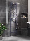 Installation depth from rough wall to frame front is minimum 67mm, while from rough wall to end finish it’s variable from 77mm to 107mm. For customisation the height of the head shower outlet is adjustable by 180mm. Sealing fleeces are also included in the set (leak test done before leaving the factory).
