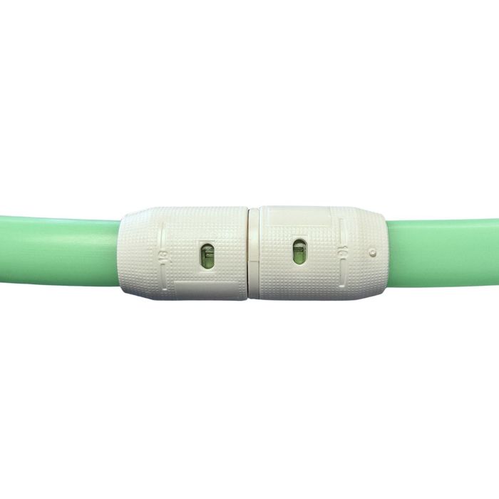 Simply slot the pipework into each end of the coupling and push until the small window turns green. The green window indicates that the pipe is securely locked into the coupling.