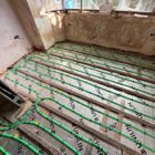 Quick and flexible system offering effective heat within a screeded floor build up.Tacker clips are fed from a specialist tool through into the PIR insulation, these staples are barbed to give a good fixing that will withstand the flex of the pipe.