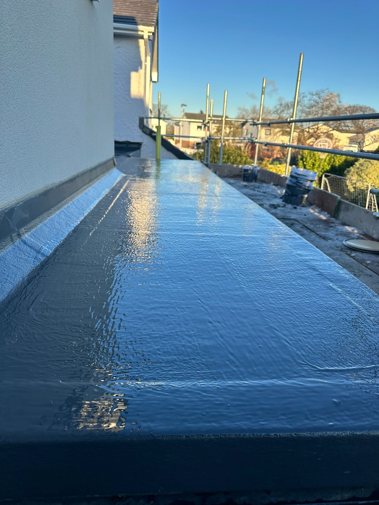 - Application to aged GRP flat roofs to refresh the aesthetics and provide additional UV protection.